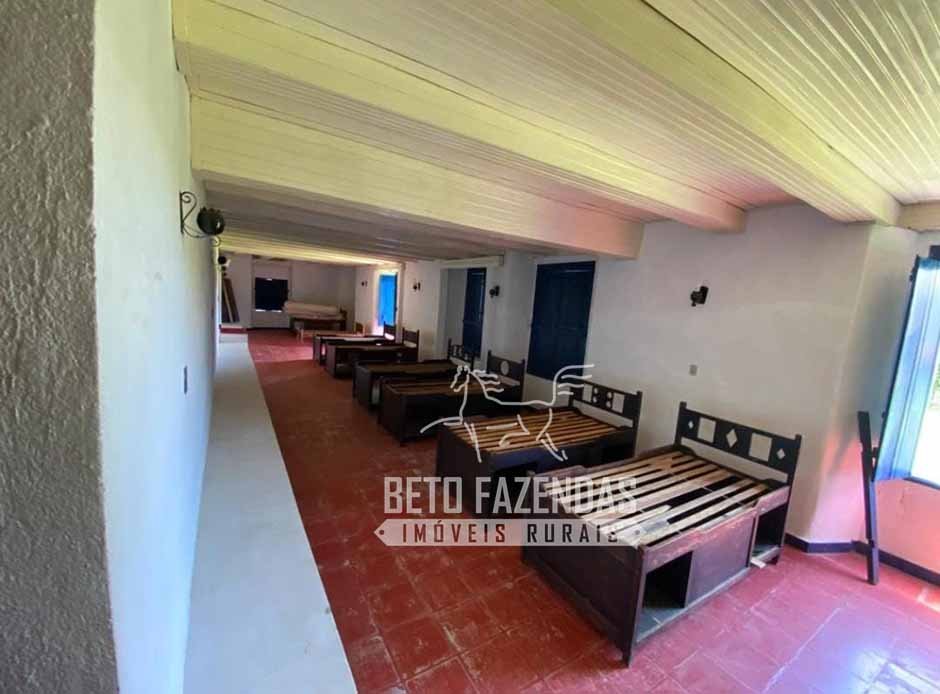 - Sede Histórica: 5 quartos, 3 suítes, capela, cozinha industrial, salas e sanitários.