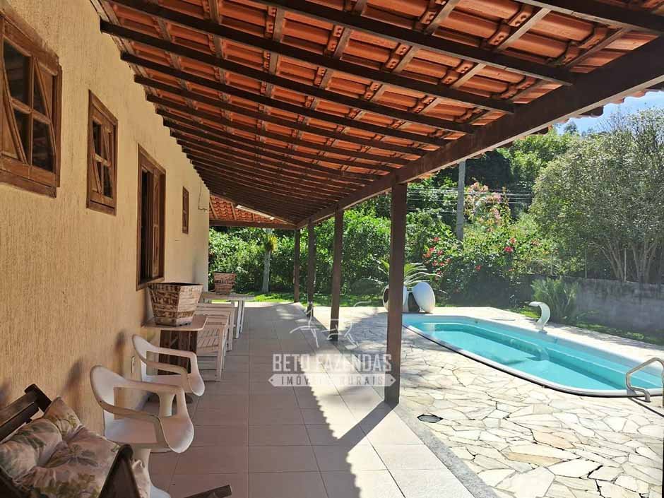 O sítio possui uma casa sede confortável e uma área de lazer completa, perfeita para eventos, fins de semana e recepção de hóspedes.